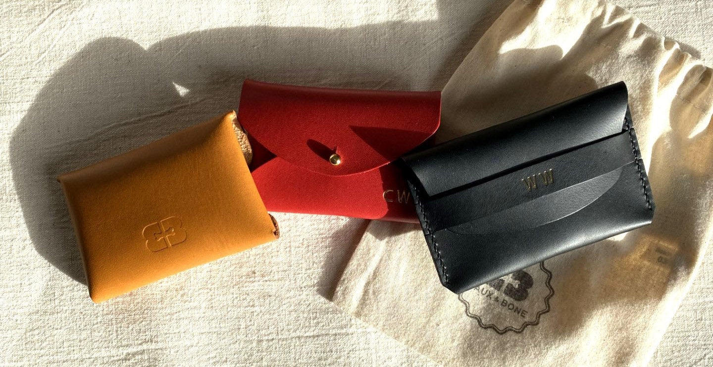 Handcrafted, handstitched personalised leather goods designed and made in our small studio in South East London. Each Baux and Bone item is made to order from ethically sourced vegetable tanned leather with care and attention to detail.